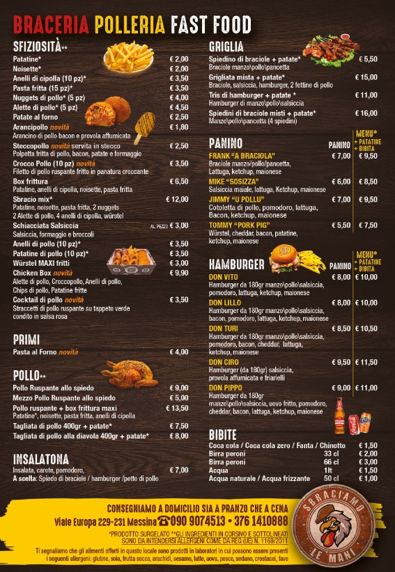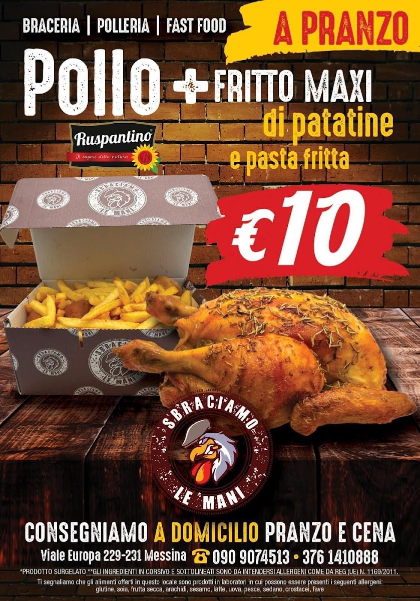 Welcome to Polleria Sbraciamo le mani, a culinary gem nestled in the heart of Messina, Italy. Located at V.le Europa, 229, this establishment transforms the humble chicken into a delightful experience that's hard to resist. Customers rave about their rotisserie chicken, often regarded as the best in town, complemented by the quality of fresh ingredients used in all their offerings.